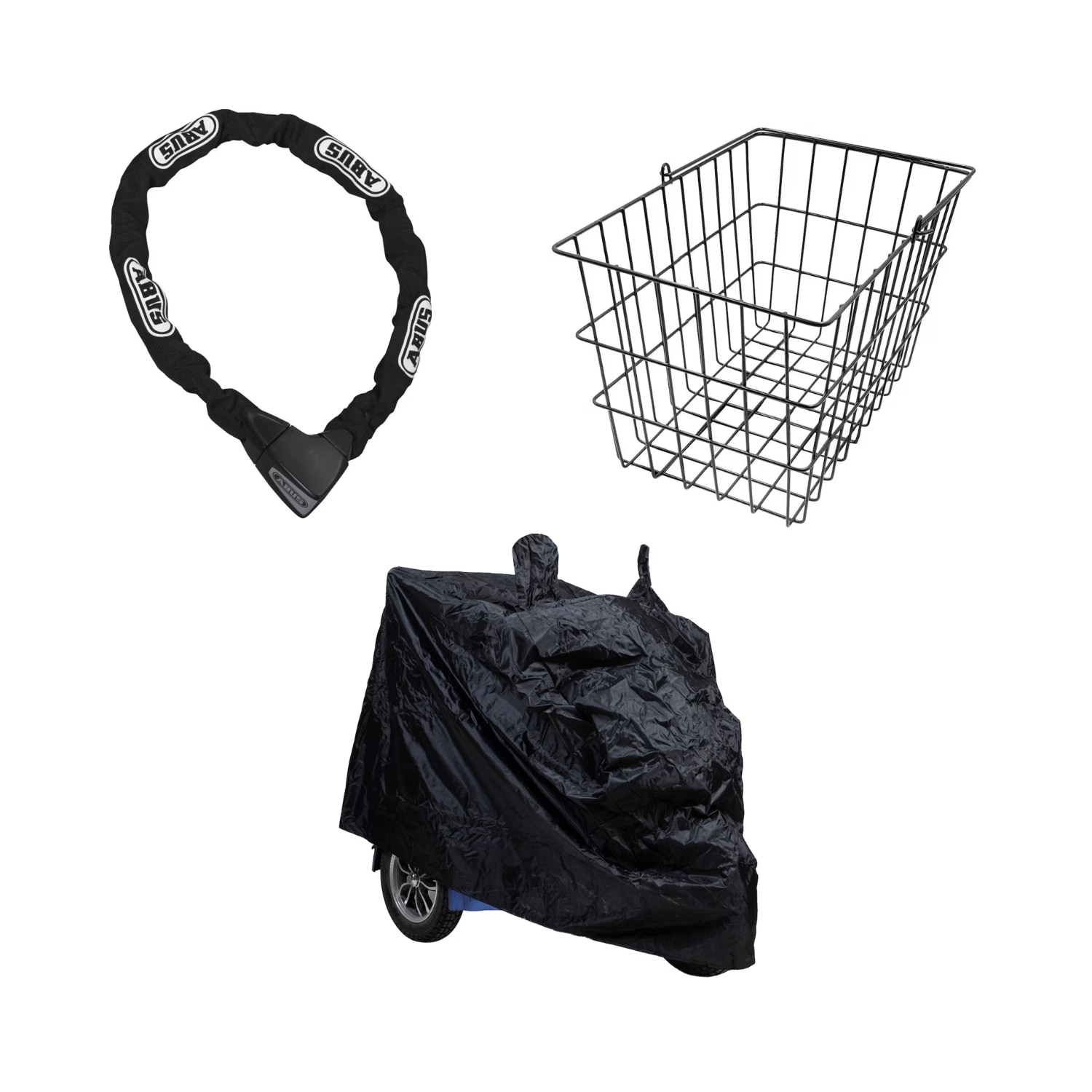 Paketti, jossa on lisävarusteita Blimo Moto ja Blimo Moto Sport malleihin. Mukana suojapeite, takakori ja ketjulukko.