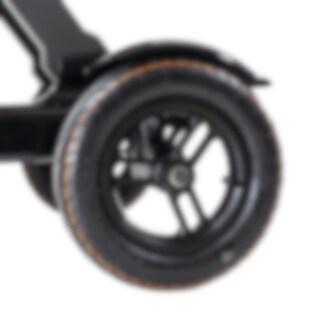Kolme pyörää antaa pienen kääntösäteen vaarantamatta vakautta, mikä on parempi ahtaissa tiloissa, kuten kaupoissa tai kapeilla kävelyteillä. Pienistä pyöristä huolimatta skootteri suoriutuu myös maastomaisesta alustasta, metsäkävelyjä tai puutarhajuhlia ajatellen.