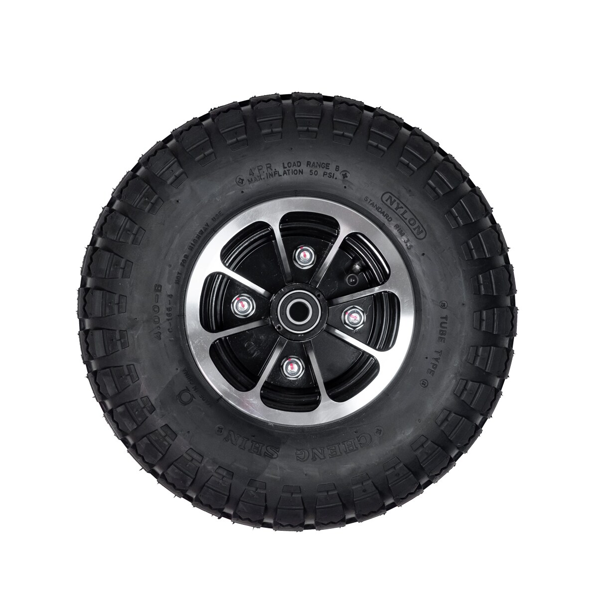 Kokonainen etupyörä vanteella, renkaalla ja sisäkumilla Blimo 90- ja 100-sarjan nelipyöräisille skoottereille.